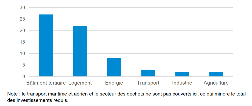 Selon le rapport Pisani-Ferry précité, le respect de l’objectif ZEN nécessitera des investissements supplémentaires de l’ordre de 100 milliards d’euros par an d’ici 2030. Cela représenterait, au minimum, un doublement de l’effort actuel, pour le porter à environ 200 milliards d’euros par an.