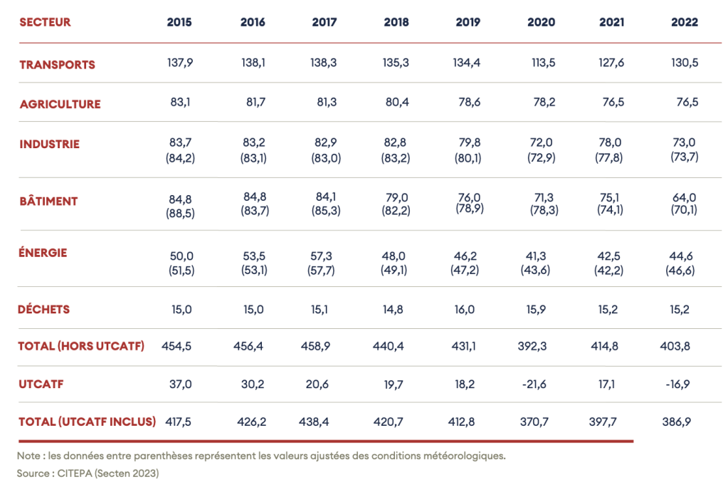 Annexe : Emissions territoriales de la France par grands secteurs en 2022