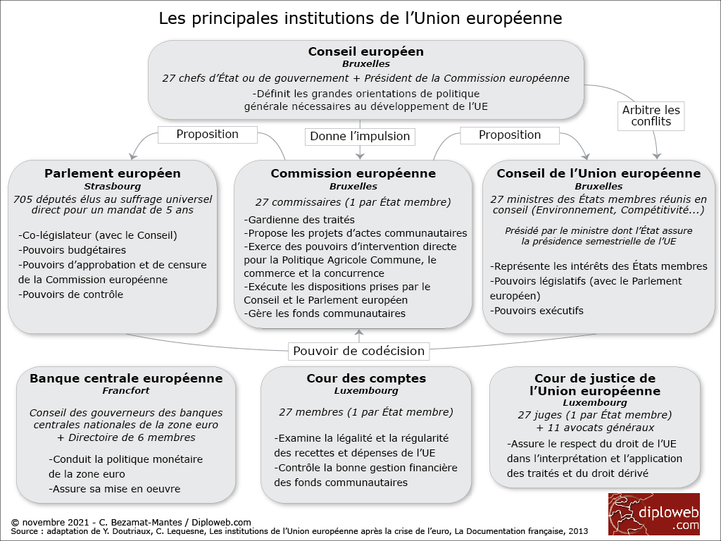 Elles se composent de quatre institutions décisionnelles, deux institutions économiques, et une institution juridictionnelle (figure 1).