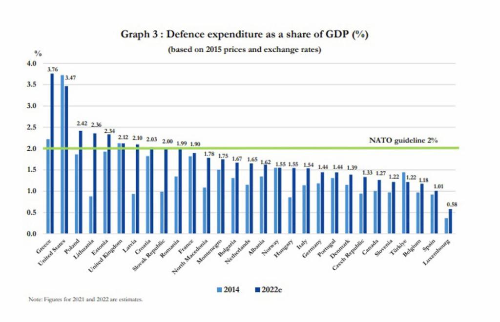 Au delà de l’Ukraine, une réélection de Trump pourrait signifier une prise de distance des Etats-Unis par rapport l’OTAN et à la défense de l’Europe. A moins qu’il ne s’agisse que d’un bluff destiné à mettre de la pression sur ces Etats européens qu’il considère comme des passagers clandestins de la protection américaine 7. A tout le moins, il y a matière à s’inquiéter, et à prendre des mesures préventives car l’Europe demeure un nain militaire 8.