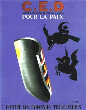 Il s’agissait du traité de Paris du 27 mai 1952 par lequel les Etats-membres de la Communauté européenne du charbon et de l’acier (CECA, prédécesseur de la CEE, créée par le Traité de Rome en 1957) instituaient entre eux « une Communauté européenne de défense, de caractère supranational, comportant des institutions communes, des Forces armées communes et un budget commun » 12.