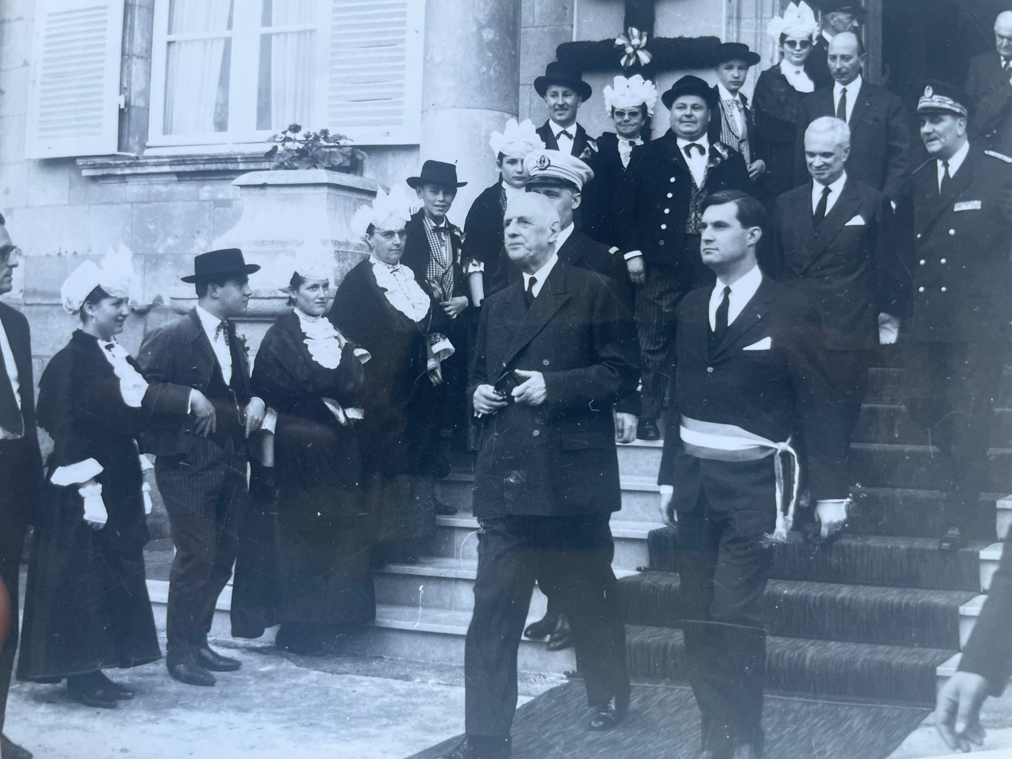 A la grille de la mairie de l’époque (figure 4), le général de Gaulle est accueilli par M. Robert Manceau, premier adjoint.