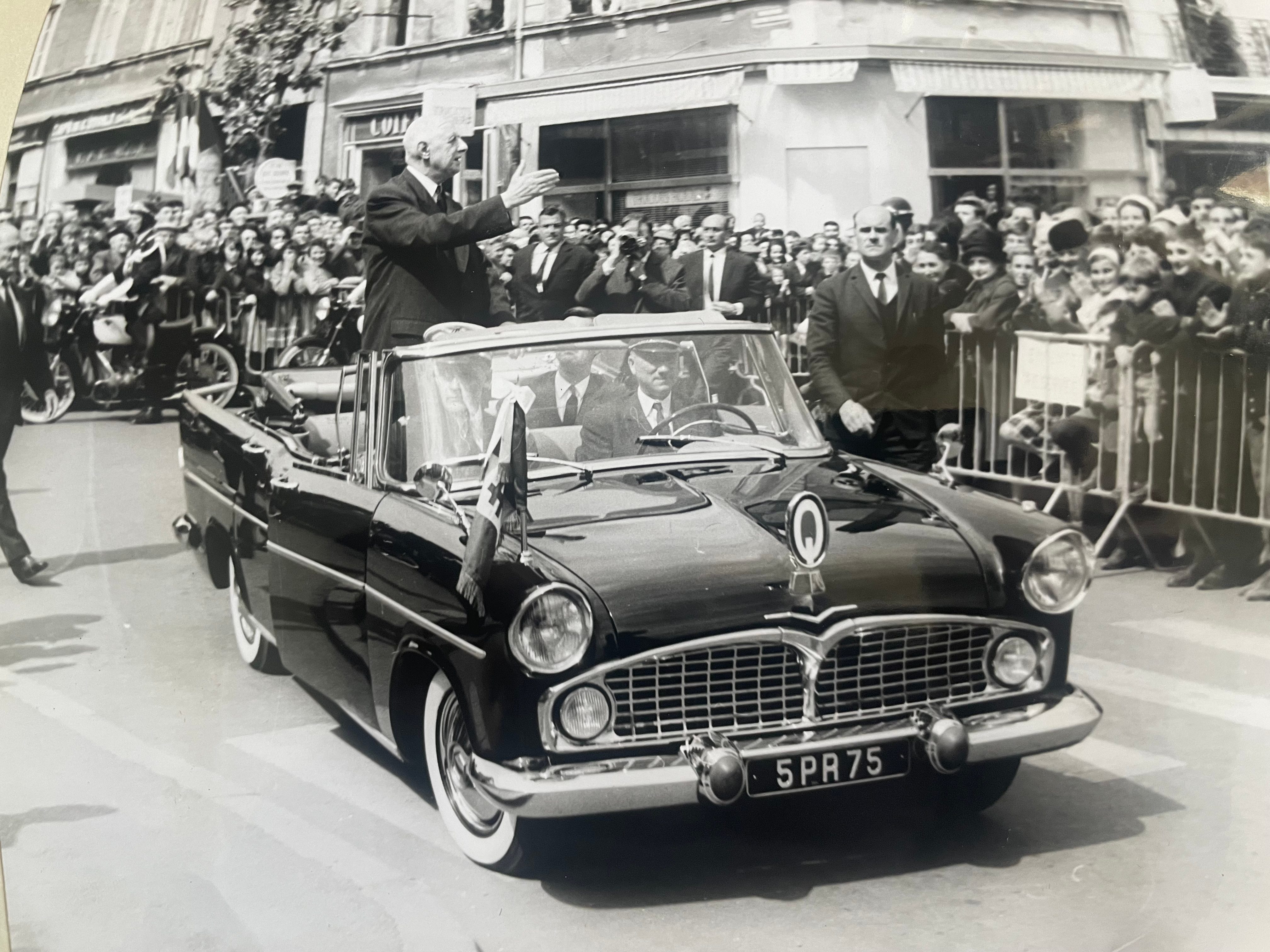 - C’est son 23è voyage officiel en France. Entre 1959 et 1969, le général de Gaulle effectuera 26 voyages présidentiels dans les 90 départements de l’Hexagone. ↩︎