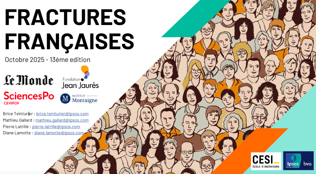 « Fractures françaises » est le nom d’un vaste sondage 1 réalisé chaque année par IPSOS 2. Il est globalement impartial dans sa conception 3, et permet de prendre le pouls des Français sur six grands thèmes :